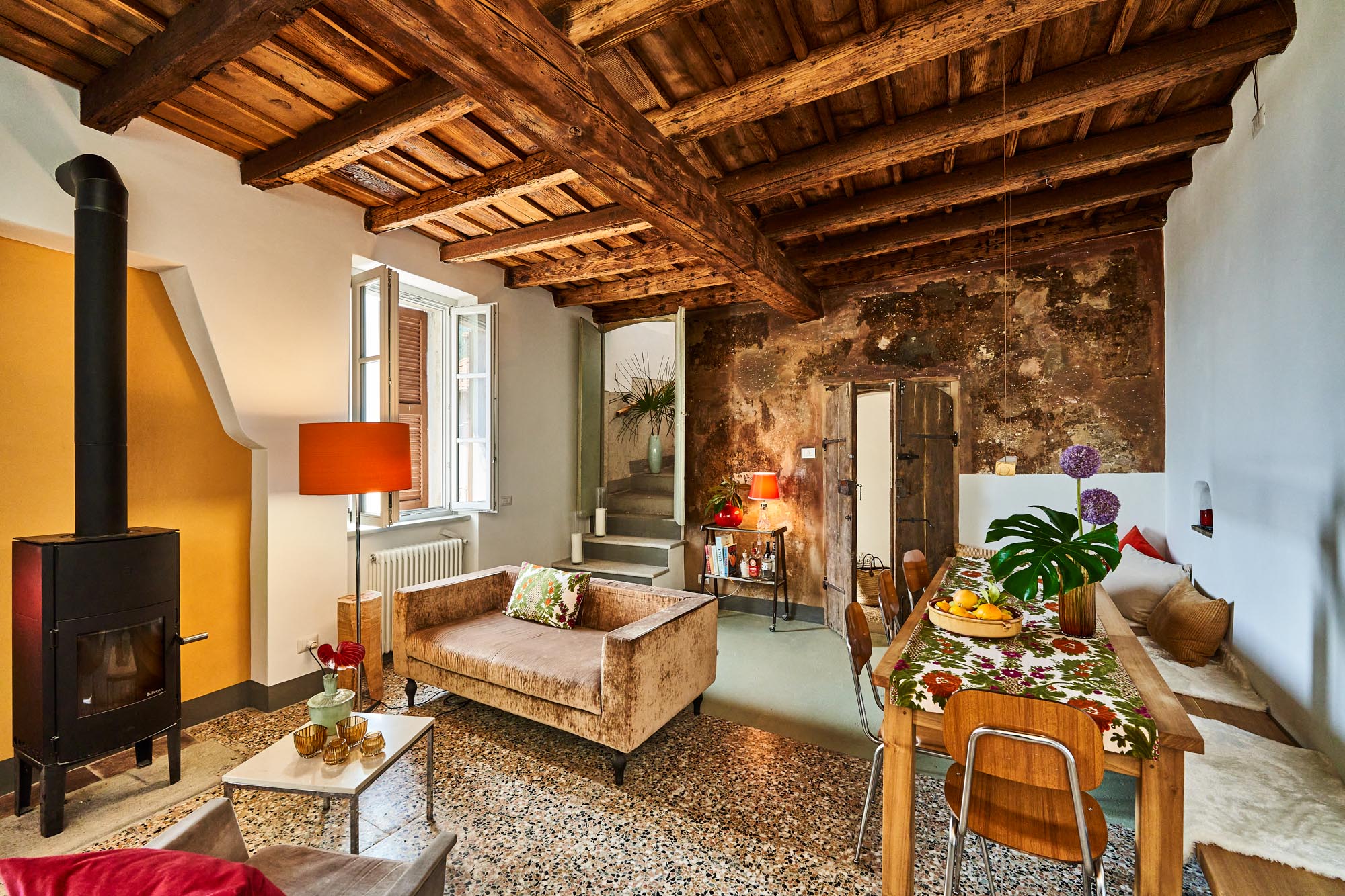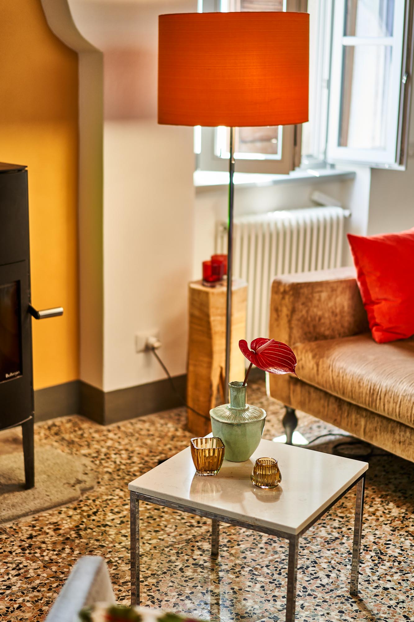 Die Einrichtung ist eine Mischung aus alten und neuen Elementen, die wir persönlich ausgewählt haben. Wir sind der Meinung, dass weniger mehr ist, weshalb wir bewusst schlichte Möbel, Unikate sowie Design Klassiker sowie harmonische Farben gewählt haben. Design und Farben begleiten uns in unserem Alltag und finden sich auch in der Einrichtung der Casa Carlazzo wieder.