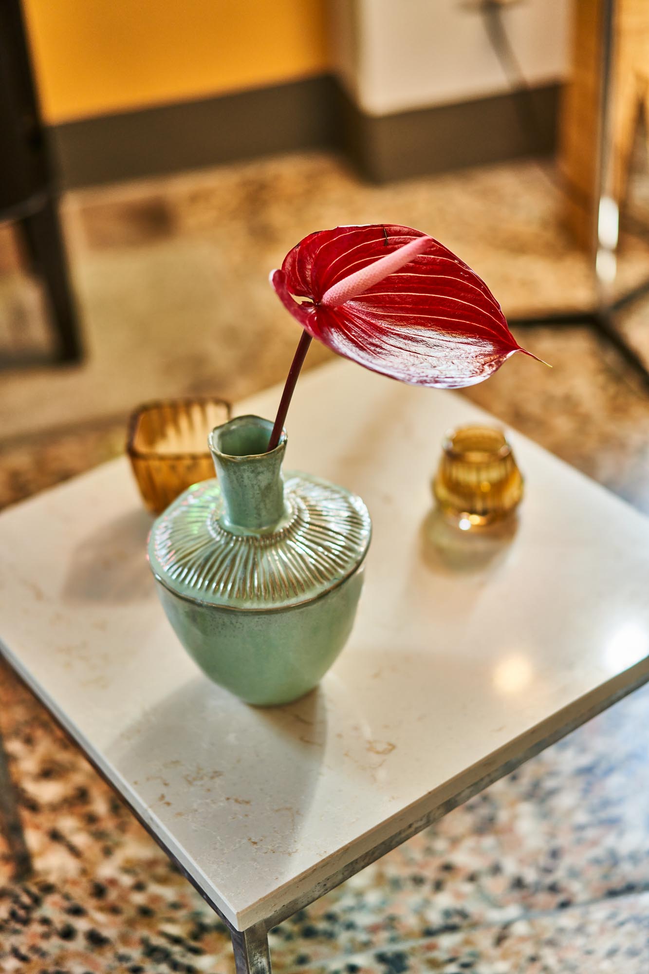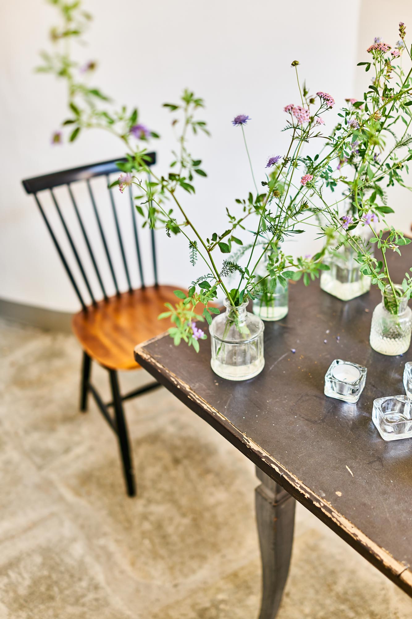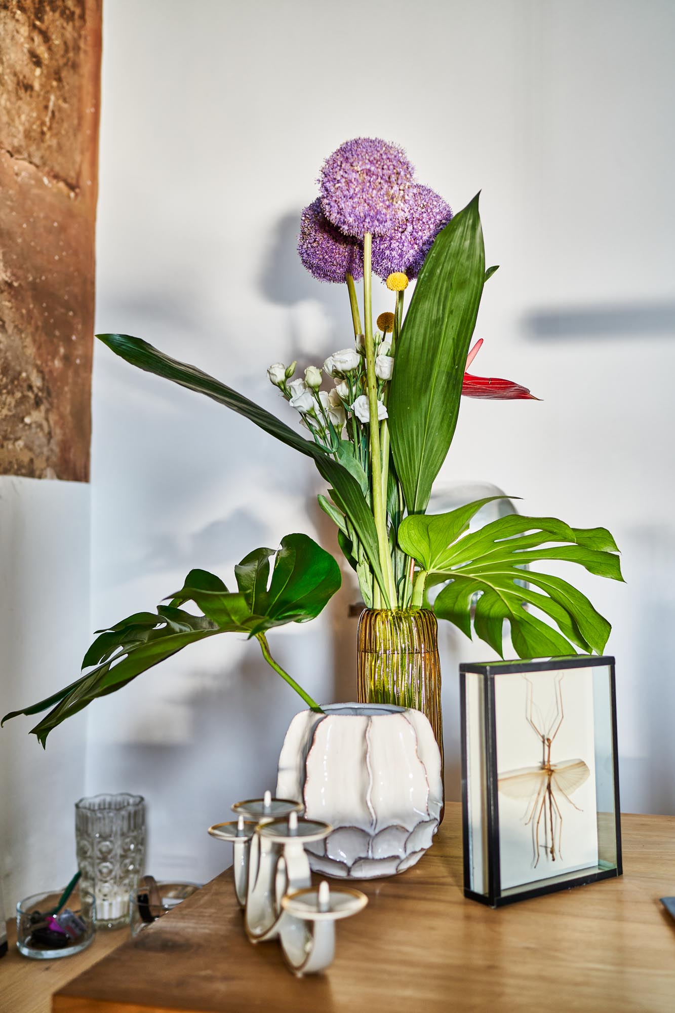 Im ganzen Haus trifft ein harmonischer Stilmix aufeinander: historische Farben, erhaltende Strukturen und modern renovierte Elemente ergänzen sich perfekt. Die Vasen und Blumen setzen frische Akzente, während die neuen Fenster, die moderne Elektrik und die neue Heizung für Komfort und Funktionalität sorgen.