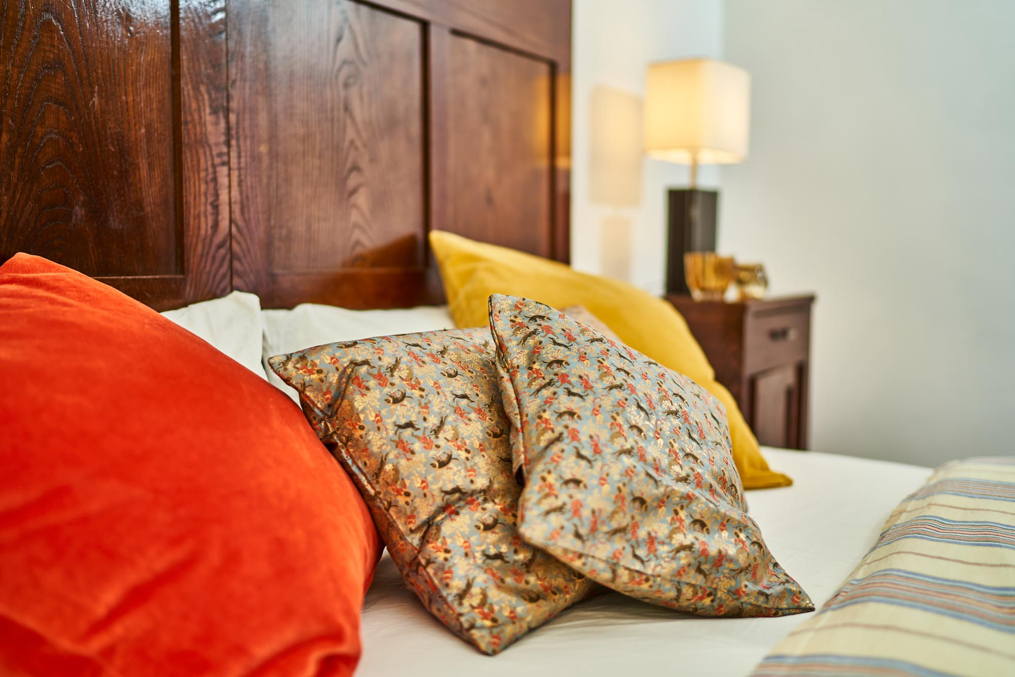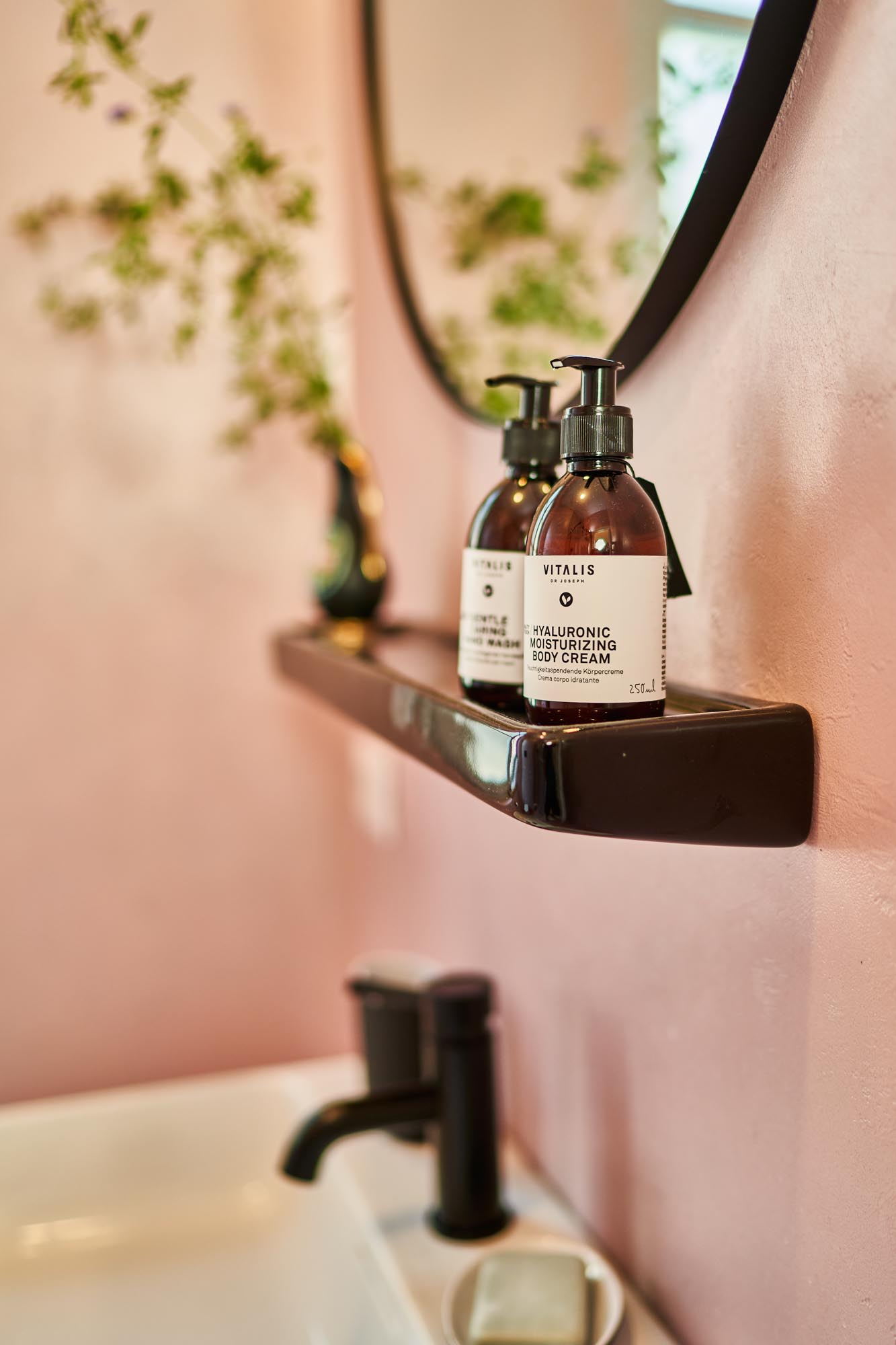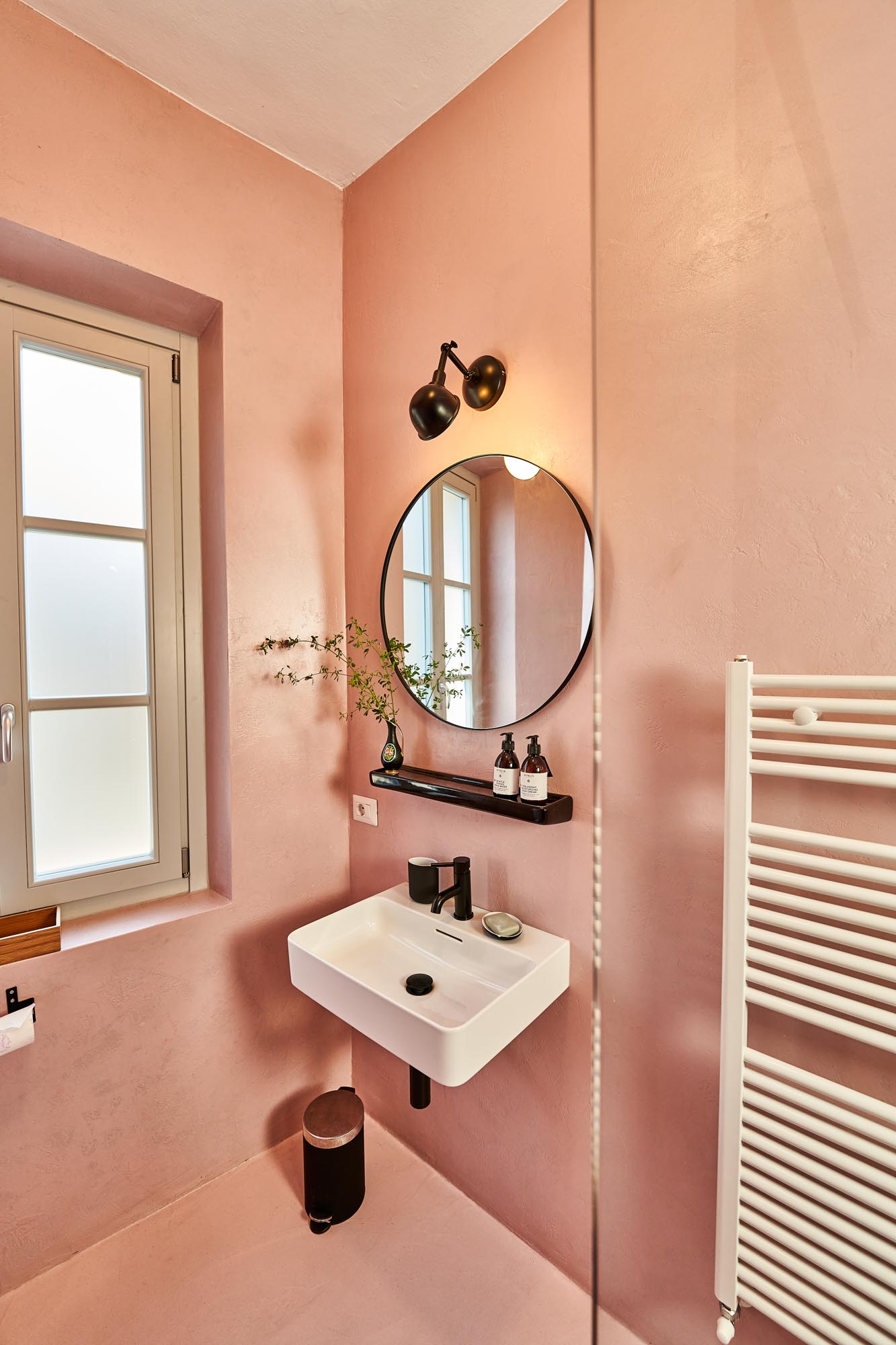 Jedes Zimmer hat seine eigene Farbe – wir haben uns an den historischen Vorlagen orientiert und die Räume in Rosé, Hellgrün und Terracotta gehalten. Einige Wände und Türen konnten wir in ihrem ursprünglichen Zustand erhalten, was dem Haus zusätzlich Authentizität verleiht.